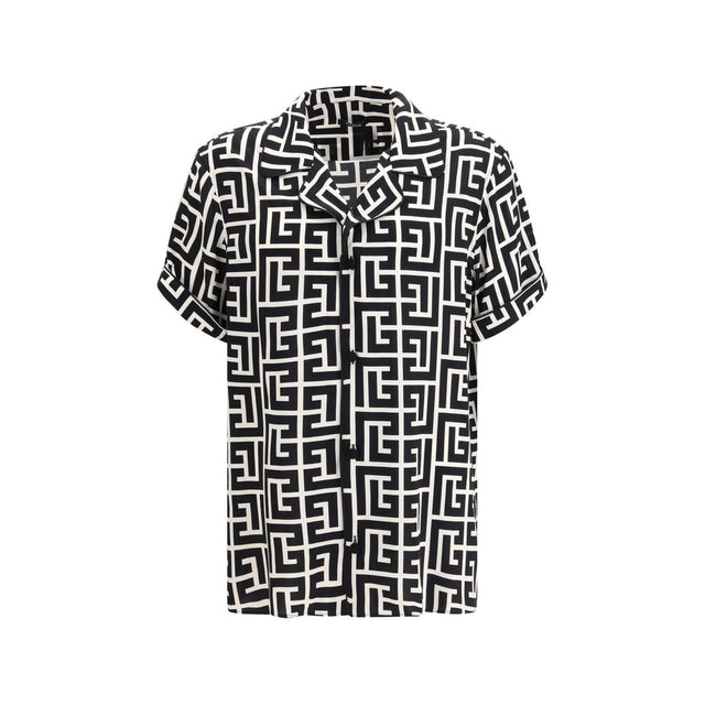The monogram-print pajama Shirt by Balmain revisits the traditional nightwear silhouette through the house’s signature PB Labyrinth motif. The design features a classic shirt collar, short sleeves with turn-up hems, and a front fastening with four covered buttons. Contrasting piping outlines the construction, while the casual fit enhances comfort and everyday wearability.