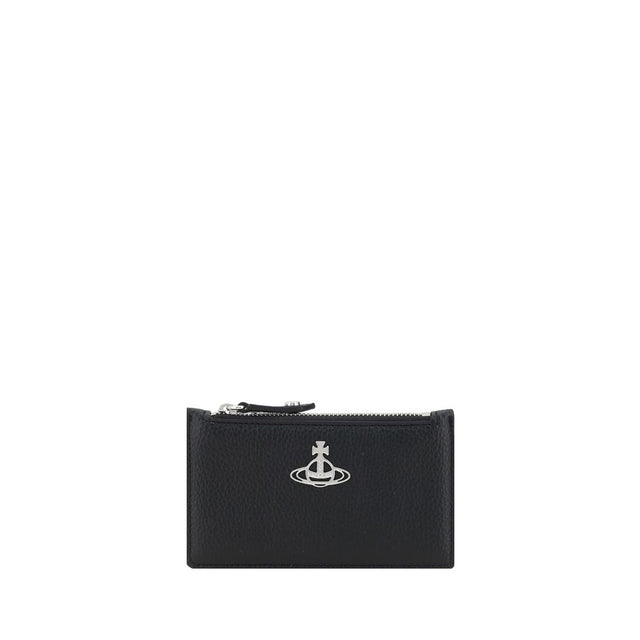 Grained leather Card Holder by Vivienne Westwood with the iconic Orb plaque applied to the front. Features a top zippered welt pocket for added security and a card slot on the back panel, ideal for organizing credit cards or documents. A mix of sophisticated style and practicality.