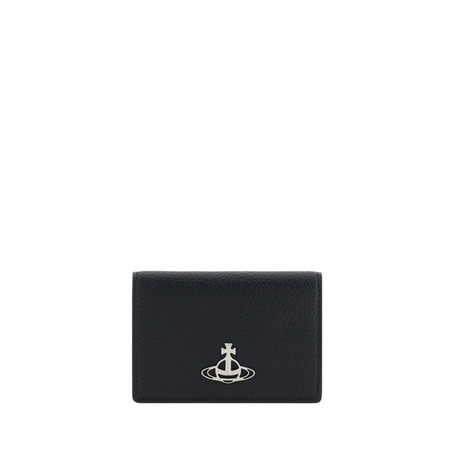 The leather Card Holder by Vivienne Westwood is a stylish and functional bifold model. It features interior card slots, a coin compartment and a plaque with the famous Orb logo applied to the front, combining practicality with distinctive style.