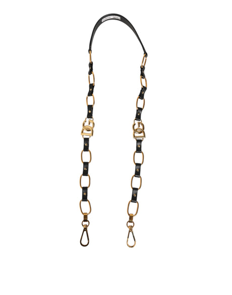 Dolce & Gabbana Black Leather Gold Chain Bag Accessory Shoulder Strap