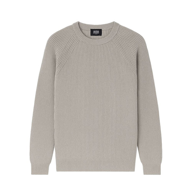 Alpha Studio crew neck sweater with brioche knit, regular fit