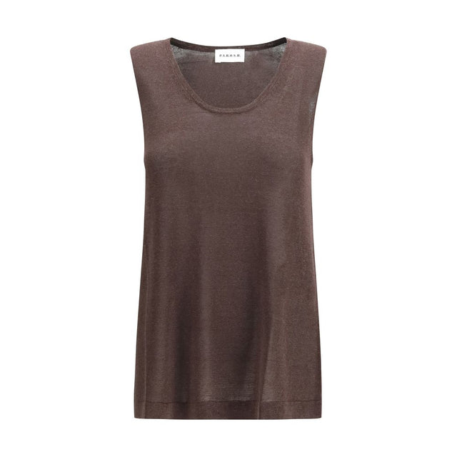 The crew-neck tank Top by Parosh conveys refined lightness through a blend of linen and viscose, creating a naturally fluid and semi-sheer texture. The essential design enhances the silhouette with subtlety, turning a minimal piece into a sophisticated and modern staple.