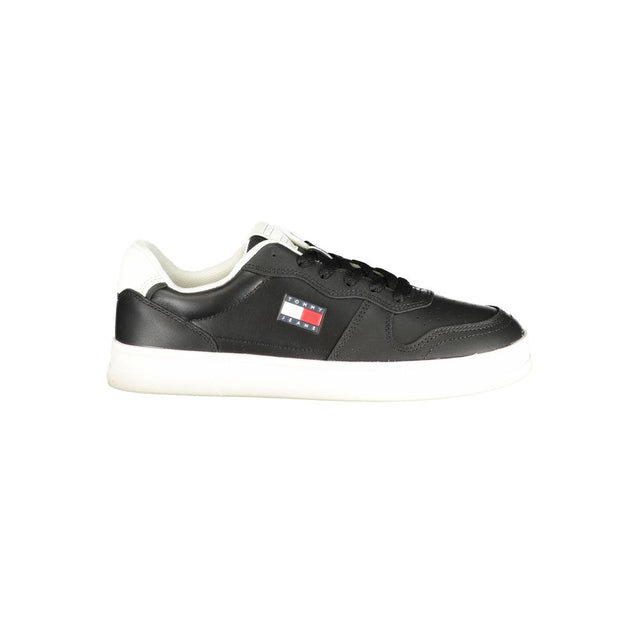 Dive into street-chic style with these sleek TOMMY HILFIGER sneakers. Crafted with a savvy blend of polyester, leather, and polyurethane, these shoes are the epitome of urban elegance combined with comfort. Hailing from the skilled artisans of China, these black beauties are a wardrobe staple for those who dare to stand out. Elevate your sneaker game with TOMMY HILFIGER’s bold fusion of luxury and sportiness.