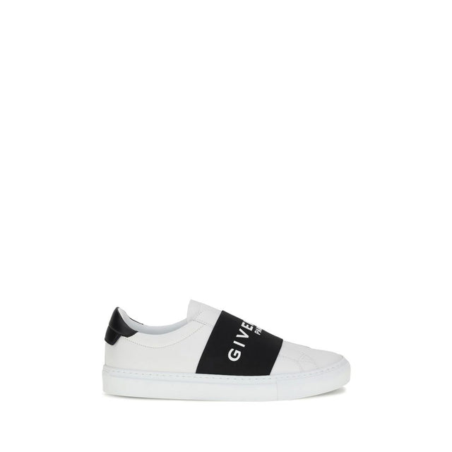 Givenchy’s Urban Street Sneakers are slip-ons made of smooth calfskin leather, featuring an embossed logo on the back and enhanced by a contrasting elastic band with Givenchy Paris lettering on the instep. Equipped with a padded ankle for maximum comfort, they feature a contrasting leather heel and printed logo on the inside, combining modern design and functionality.