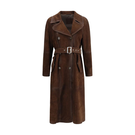 Valstar dobbeltradet trenchcoat med bælte i kraftig ruskind med vintage-look