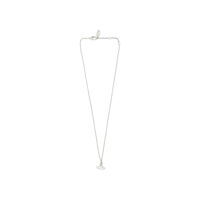Reina Pendant Necklace by Vivienne Westwood, classic hook fastening, iconic Orb pendant, silver-plated finish, shiny jewel applied to pendant.