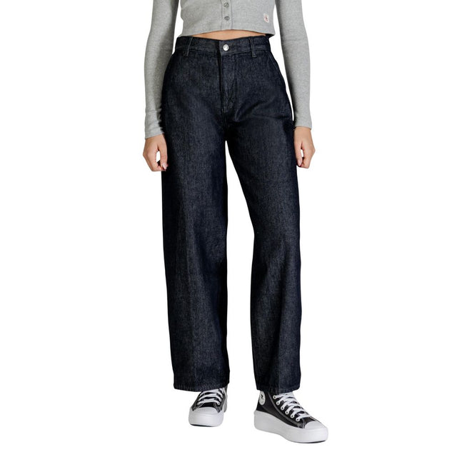 The Calvin Klein Jeans TROUSER BARREL CK RI LV047C796G women’s jeans feature a modern flared and bootcut silhouette, designed to enhance every body shape. Crafted from 80% cotton and 20% recycled cotton, these jeans offer comfort, durability, and a sustainable approach. The high-rise waist elongates the figure, while the wide leg brings a contemporary and versatile touch, perfect for both casual and more refined outfits. Button and zip closure, along with front and back pockets, ensure practicality and style. A must-have piece for those seeking Calvin Klein’s signature quality and trendiness.