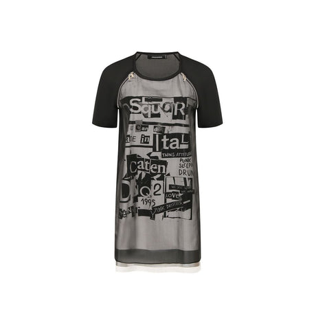 Dsquared² Black Tie Dye Mesh Long Sleeves Cotton Shift Dress