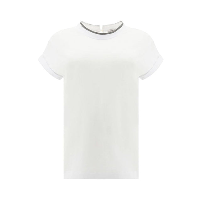 The cotton T-shirt by Brunello Cucinelli features a clean, understated silhouette elevated by the brand’s iconic detailing. The neckline is embellished with contrasting monili, while a back keyhole with button closure adds a refined touch. Finished with a regular fit, it balances comfort and sophisticated simplicity.