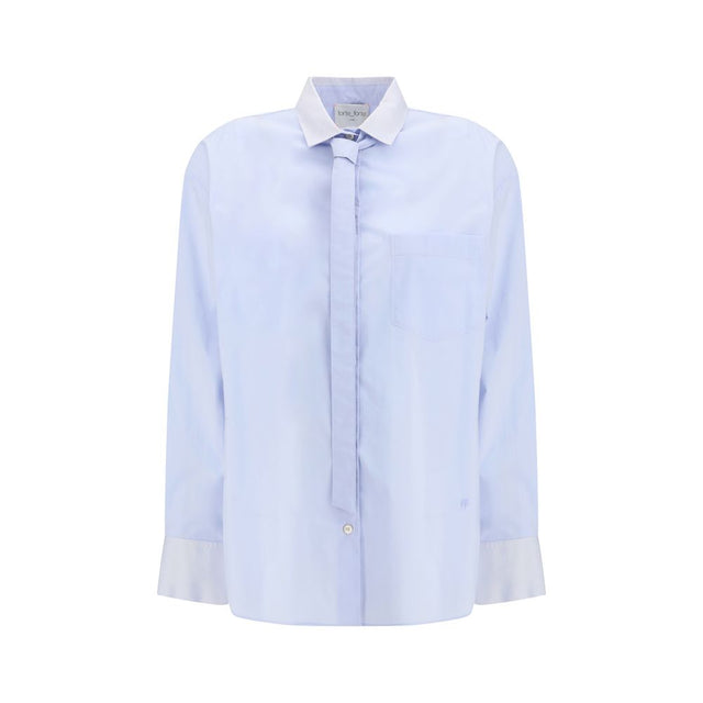 The Oversized Cotton Poplin shirt by Forte Forte conveys a balance of structure and femininity through its essential, modern cut. Tone-on-tone grosgrain details refine the collar and cuffs with precision, while the matching tie element introduces a sartorial gesture of strong impact. The asymmetric hem with rounded side slits invites sophisticated layering, making the piece a versatile and contemporary wardrobe ally.