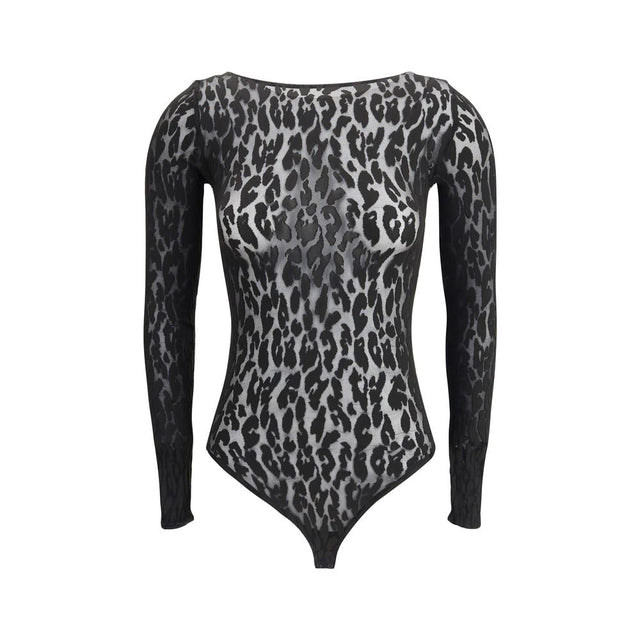 The Leo String Body by Wolford is a bold style statement, playing with the allure of animalier patterns and the refined contrast between sheer and opaque textures. Crafted with innovative circular knitting, typical of tights, and sustainable dyeing processes, it offers a velvety and sophisticated finish. The slim fit sculpts the silhouette, while the subtle round neckline and practical snap-button closure complete the design. A piece that masterfully combines sensuality and comfort.
