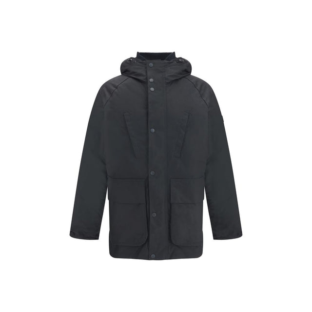 The Oakdale Down Jacket by Barbour is a padded model designed to face the cold weather with style and functionality. Featuring an adjustable drawstring hood, it has a front zipper and snap closure. The design includes two front flap pockets, two welt pockets on the chest and a logo patch on the left shoulder for a distinctive touch.