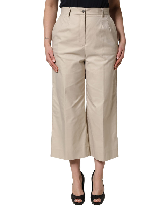 Gorgeous brand new with tags, 100% Authentic Dolce & Gabbana tailored trousers. These elegant beige pants feature a refined mid-waist silhouette with front pleats and cropped straight-leg cut, offering a timeless and sophisticated look. Crafted from premium fabric with a touch of stretch, they provide both structure and comfort—perfect for polished office wear or elevated casual styling.