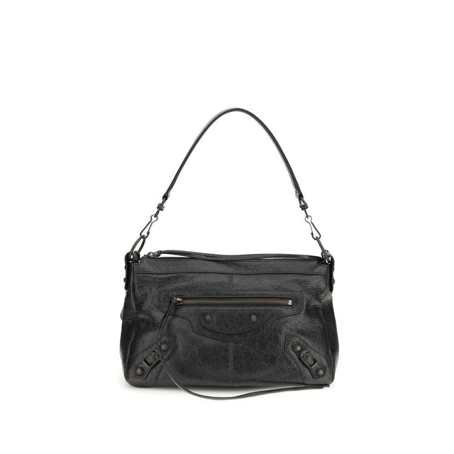 Le City Moto small Shoulder Bag by Balenciaga combines iconic style and functionality, with shoulder or crossbody carry options thanks to the adjustable and removable shoulder strap. Brass hardware enhances the design, while the zippered closure and knotted leather puller ensures practicality. The model is completed with a zippered front pocket, a main compartment and an interior zippered pocket for essential and refined organization.