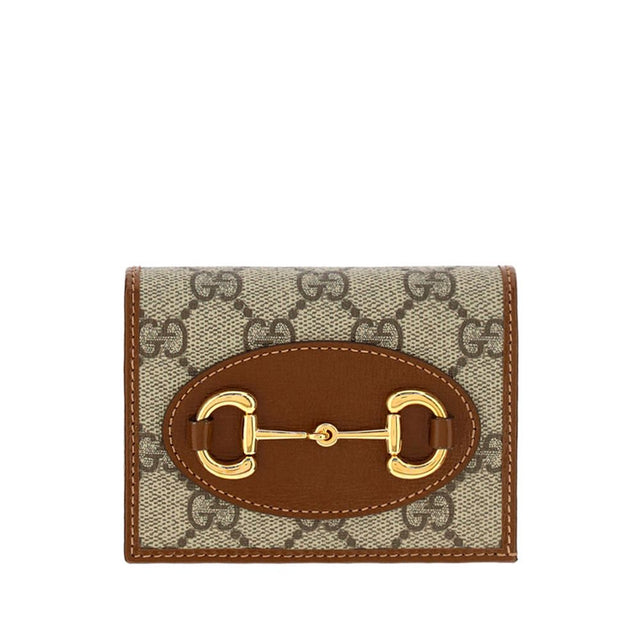 Gucci’s Horsebit Card Holder combines elegance and practicality with a distinctive design. It features a snap button closure and repeating GG logo motif, enhanced by a gold-colored Horsebit plaque on the front that adds an iconic touch. Inside, card slots and a zippered coin purse offer functionality and order in every detail.