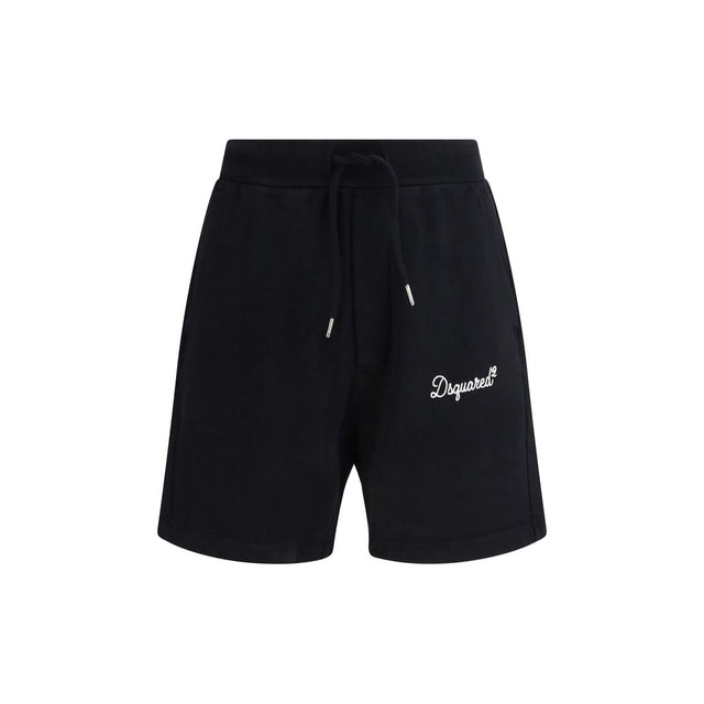 The cotton Shorts by DSQUARED2 featuring an elasticated waistband and a cursive embroidered logo placed on the lower left side. They include two side welt pockets and a knee-length cut. The design is finished with two drawstrings that extend from the elastic waistband, allowing for adjustable fit and adding a sporty touch.