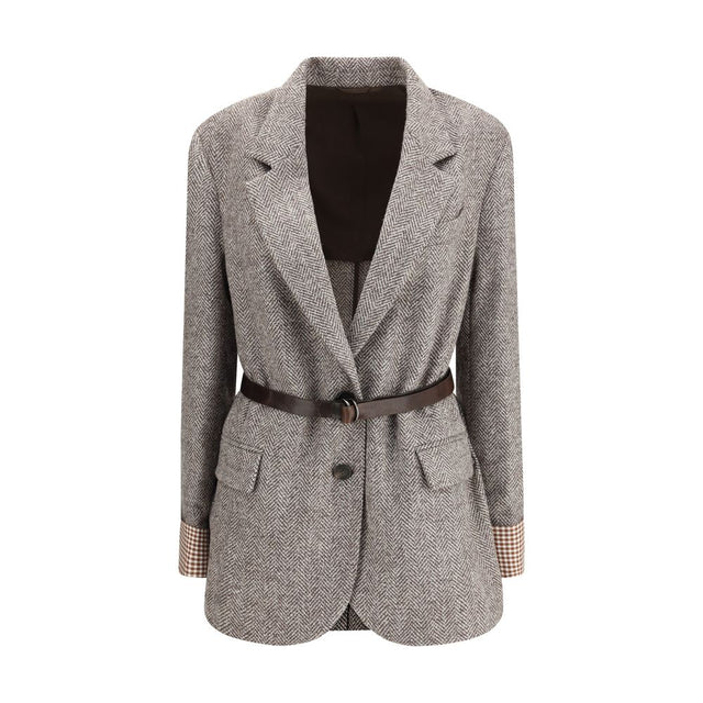 The patterned wool Jacket by Brunello Cucinelli combines refined tailoring with contemporary comfort. Featuring a single-breasted front, classic lapels, two lower patch pockets, and structured cuffs, the design offers a relaxed yet elegant silhouette. Crafted from premium patterned wool, the fabric enhances depth and texture, embodying the timeless sophistication and artisanal spirit of the Solomeo atelier.