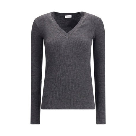 Brunello Cucinelli Gray Wool Long Sleeve T-Shirt