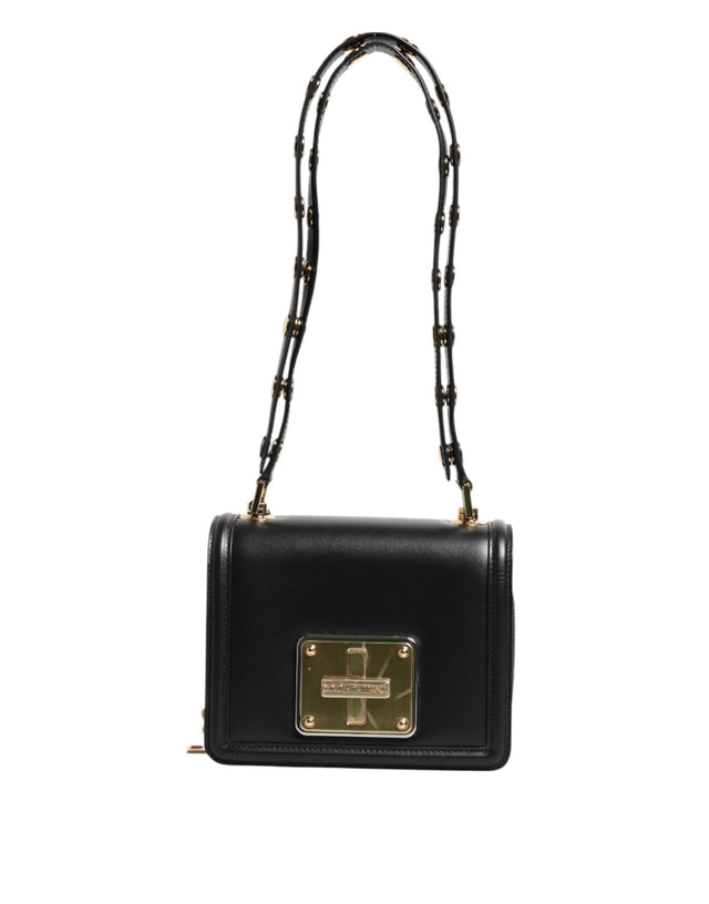 Gorgeous brand new, 100% Authentic Dolce & Gabbana bag in smooth calf leather and cotton fabric features studded adjustable shoulder strap, flap top with engraved logo turn-lock/zip closures.