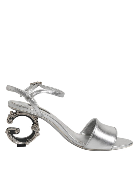 Dolce & Gabbana Silver Leather DG Heels Keira Sandals Shoes