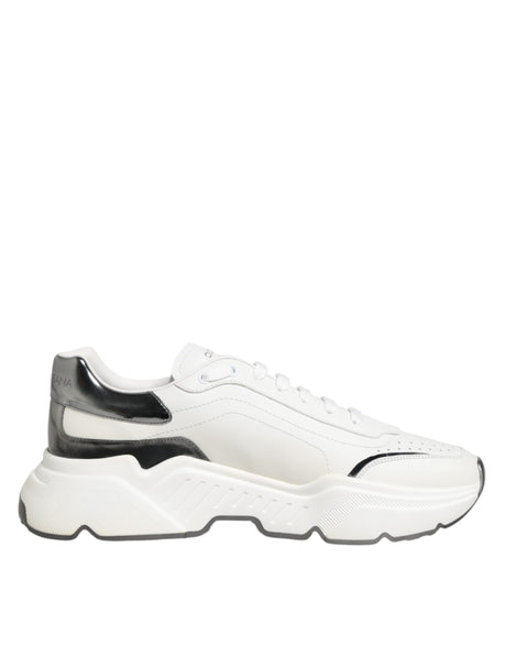 Dolce & Gabbana White Silver DAYMASTER Leather Sneakers Shoes