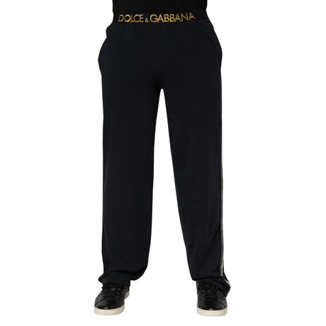 Dolce & Gabbana Black Modal Spandex Straight Logo Trouser Pants