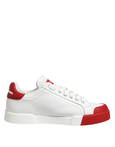 Dolce & Gabbana White Red Leather Lace Up Sneakers Shoes