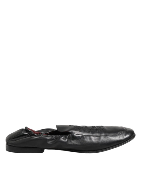 Dolce & Gabbana Black Leather Slip On Men Flat Loafers Shoes