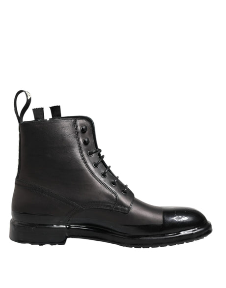 Dolce & Gabbana Black Leather Lace Up Mid Calf Boots Shoes