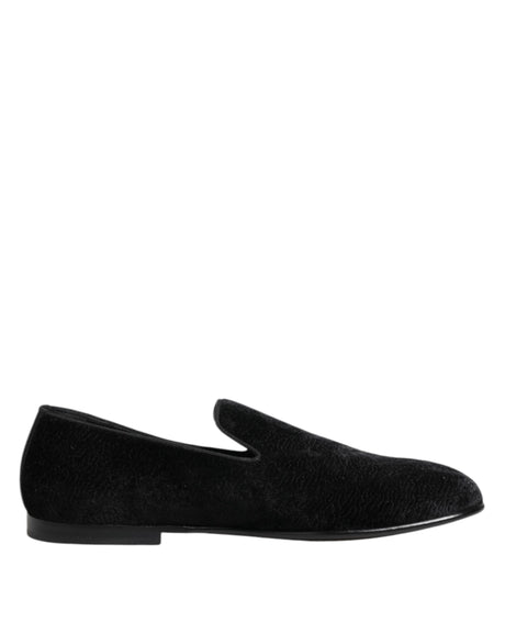 Dolce & Gabbana Black Velvet Slip On Loafers Men Formal Shoes