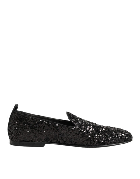 Dolce & Gabbana Black Sequined Slip On Loafers Dress Shoes