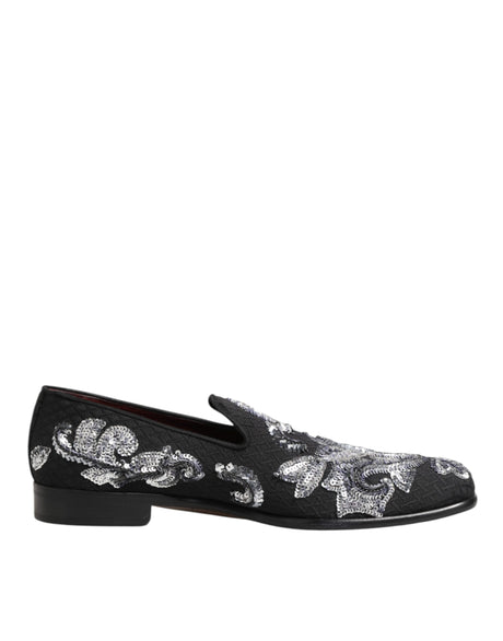 Dolce & Gabbana Black Silver Sequined Loafers Men Dress Shoes