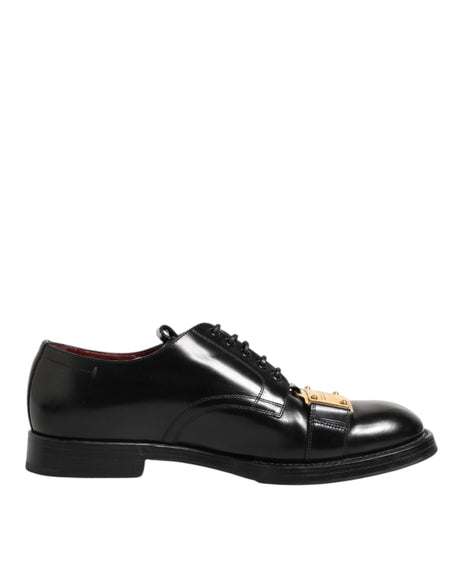 Dolce & Gabbana Black Leather Dress Lace Up Logo Plaque Shoes