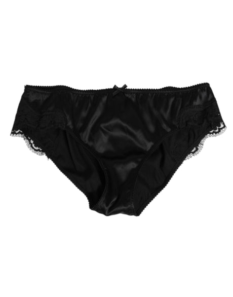 Dolce & Gabbana Black Silk Floral Lace Mid Waist Panty Underwear