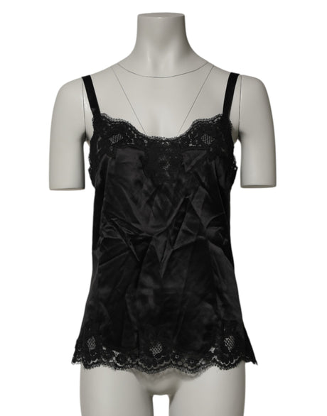 Dolce & Gabbana Black Silk Floral Lace Tank Lingerie Top Underwear