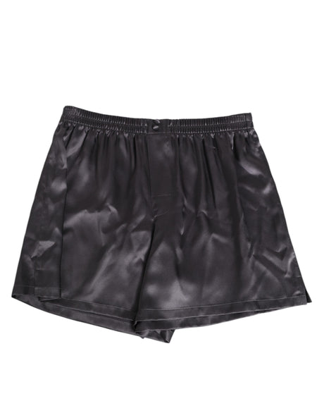 Dolce & Gabbana Black Satin Silk Elastic Men Boxer Short Swimwear