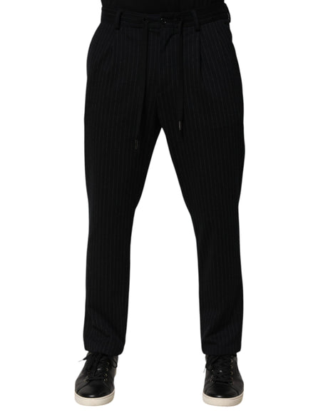 Dolce & Gabbana Black Stripes Viscose Skinny Dress Men Pants