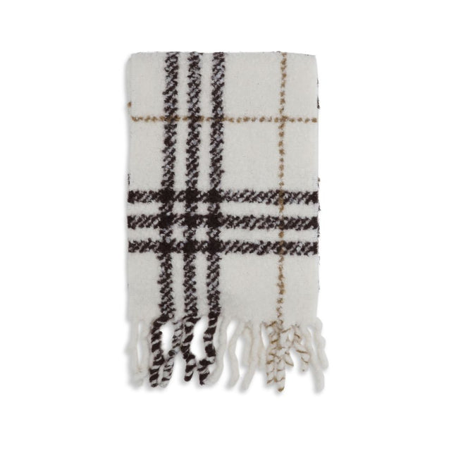 The alpaca-wool bouclé blend by Burberry, woven with the iconic Burberry Check in the seasonal Post Red shade. The soft, plush texture enhances its cozy feel, while chunky twisted fringes at both ends add a refined yet authentic finish. A luxurious cold-weather accessory designed to elevate any winter ensemble.