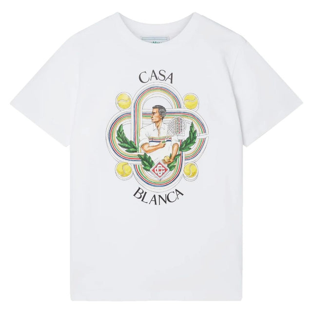 Casablanca, 100 % bomuld t-shirt med rund hals, tennisklub joueur print, hvid farve, afslappet pasform
