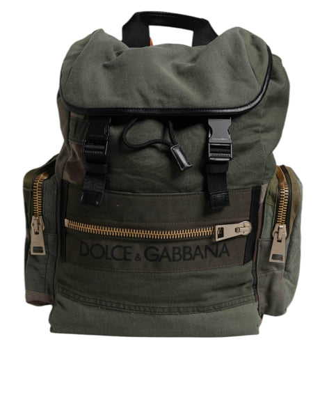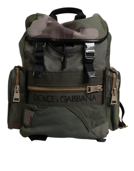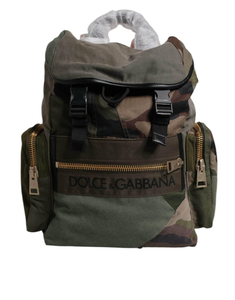 Dolce & Gabbana Grå Bomuld Camouflage Logo Plaque Rygsæk Taske