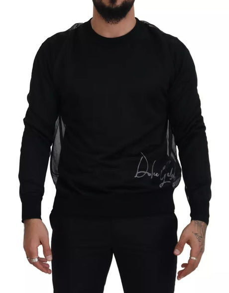 Dolce & Gabbana Black Polyester Crewneck Men Pullover Sweater