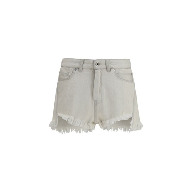 The Shorts Temple Bias Cutoffs in Denim by Rick Owens are six-pocket, mid-rise straight fit shorts with a raw-cut hem. They feature a concealed zip fly with top button, belt loops and a bias-cut panel that creates a slightly longer back length. Crafted from 13oz Japanese denim, they are bleached and washed to achieve the Dirty Milk tone, with ZDHC-certified washes.