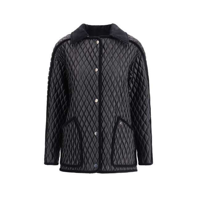 The Floriston Jacket by Burberry is crafted from quilted nylon with lightweight padding, combining functionality and contemporary style. Featuring a cropped, comfortable silhouette, it includes a shirt collar and a front closure with zip and snap buttons. Front patch pockets and back vents with snap buttons enhance practicality and movement, while the metallic Equestrian Knight Design emblem on the pocket adds a signature touch. A versatile and refined piece, perfect for transitional weather and an effortlessly sophisticated casual look.