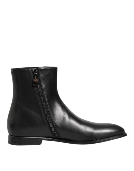 Dolce & Gabbana Black Leather Mid Calf Men Boots Shoes