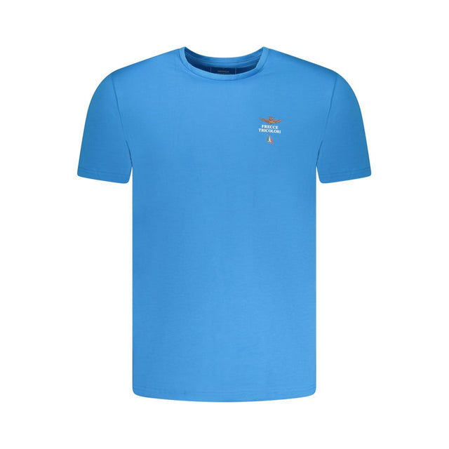 Løft din stil til nye højder med Aeronautica Militares tricolor pil-T-shirt. Denne top kombinerer elegant design med jetsetter-elegance og legemliggør den dristige ånd af luftrummet. Denne top er fremstillet af en førsteklasses blanding af bomuld og elastan og sikrer komfort uden at gå på kompromis med stilen. Det slående print og signaturlogo fanger opmærksomheden og sikrer, at du skiller dig ud fra mængden. Dyk ned i det blå og bær din loyalitet til high fashion med stolthed.