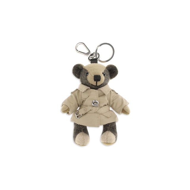 The Thomas Bear Charm by Burberry is a playful and refined accessory, crafted from cashmere with the iconic Burberry Check pattern. Thomas Bear wears a mini trench coat in cotton gabardine and features movable arms and legs, adding a dynamic and fun detail. The charm is finished with polished metal elements and the Burberry name engraved on the clasp, making it perfect for adding a distinctive touch to bags, key rings, or outfits.