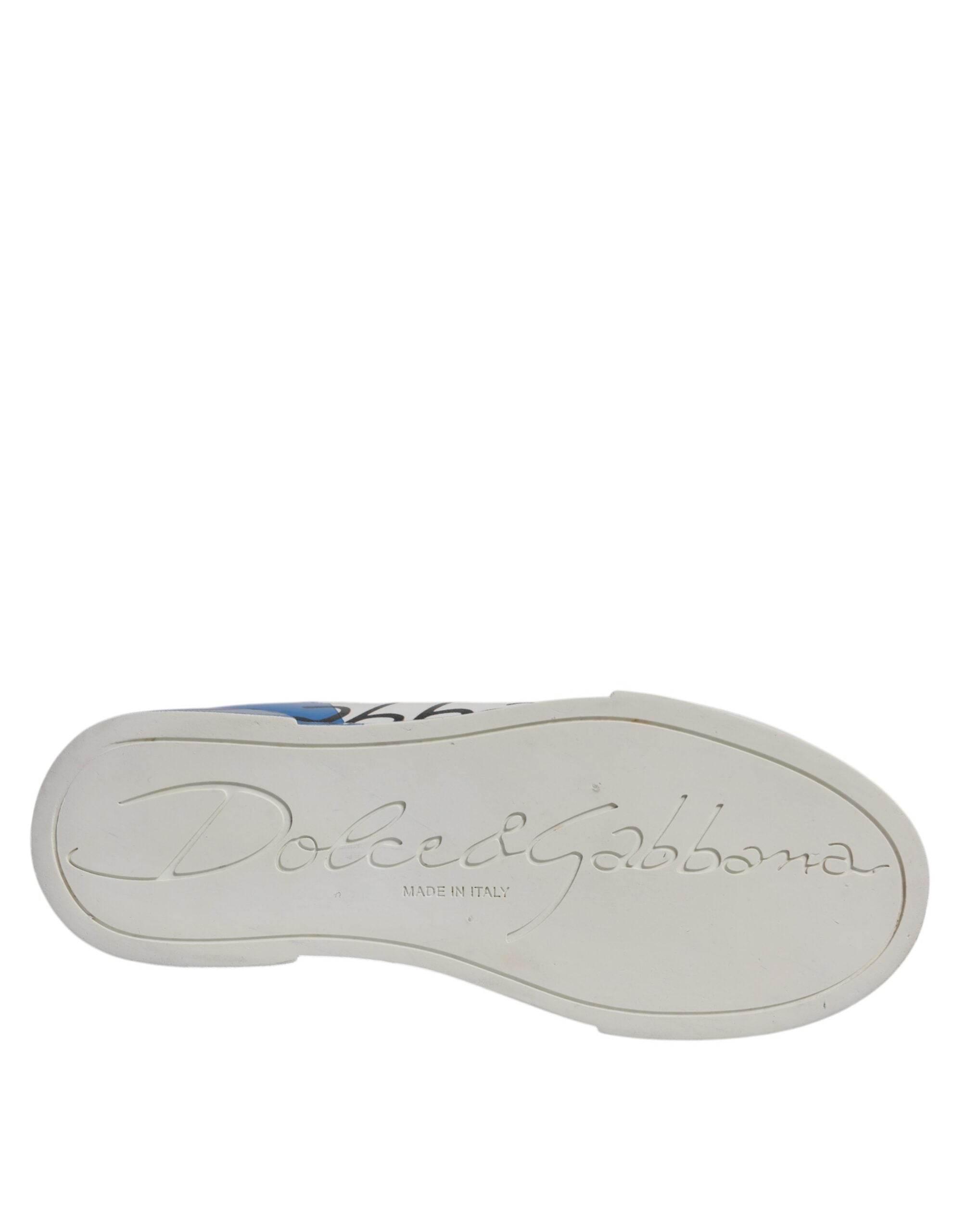 Smukke brugte, 100 % autentiske Dolce & Gabbana Portofino sneakers kommer med mærkenavnet påskrevet. De er lavet af læder i en blå og hvid nuance og har snørebånd, runde tæer og behagelige gummisåler.