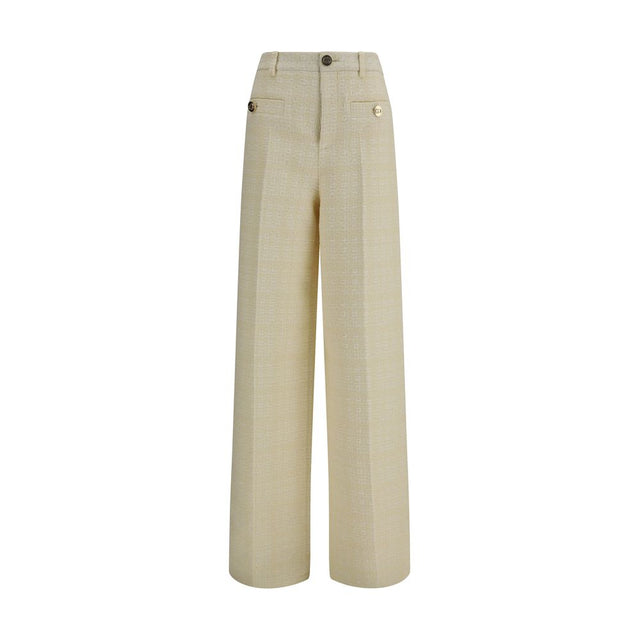 The cotton tweed check Pants by Gucci combine classic elegance and modernity with their sophisticated style. The ivory cotton tweed fabric with a check pattern gives a refined and versatile look, perfect for any occasion. The metal GG Interlocking GG button, an iconic symbol of the fashion house, adds a distinctive touch. The model is lined to ensure comfort and a perfect fit. The front pockets and button and zipper closure complete the design, making these pants a must-have for those seeking a chic and contemporary look.