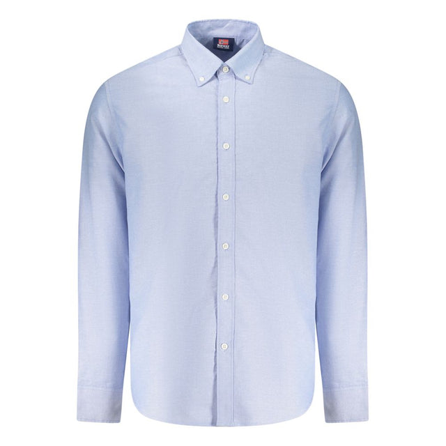 Elevate your wardrobe with the timeless sophistication of NORWAY 1963. This long-sleeved shirt exudes chic style, featuring a sharp button-down collar, adjustable 2-button cuffs, and polished buttons. The subtle logo detail adds an authentic touch of luxury to this essential piece. Crafted from premium 100% Cotone, it promises comfort and durability. Impeccably designed in Pakistan, this shirt comes in a serene Azzurro hue, perfect for creating versatile looks that stand out.