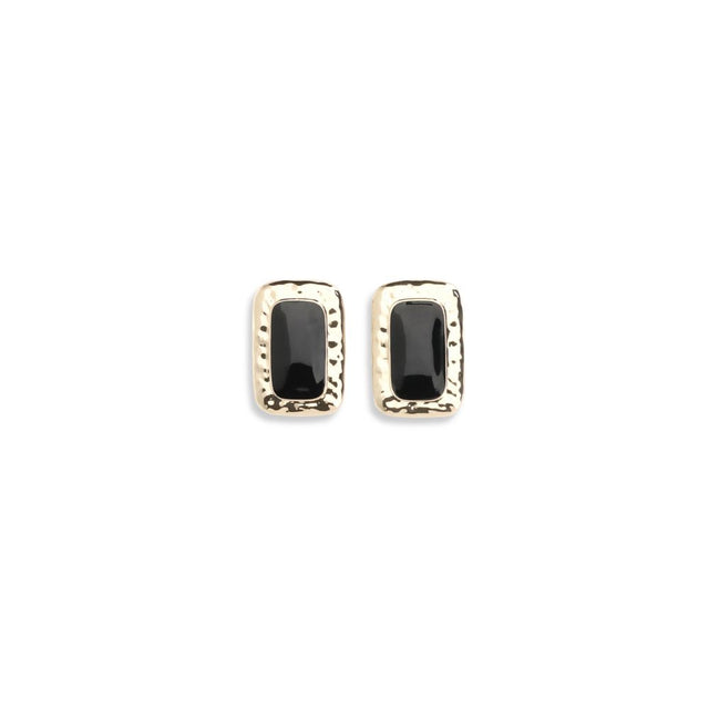 The mottled gold Earrings by Self-Portrait, inspired by vintage glamour, feature elegant black enamel squares framed by a mottled gold base. Equipped with a stud holder, they are a refined and versatile accessory, ideal for completing both everyday looks and more sophisticated outfits.